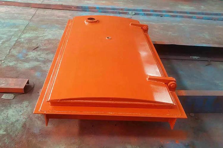 避難硐室密閉門使用對(duì)稱的方式進(jìn)行安裝,它的每一個(gè)安裝件都是使用鋼材料來(lái)焊接成的。避難硐室密閉門的門扇是由井字結(jié)構(gòu)來(lái)進(jìn)行焊接的,反風(fēng)的主要裝置是采用鋼管來(lái)插拴的,安裝的時(shí)候在合頁(yè)處涂上潤(rùn)滑油,保證使用的靈活性。斜風(fēng)井防爆門關(guān)門時(shí),各部件反向擺動(dòng),到關(guān)閉狀態(tài)時(shí)成矩形狀態(tài)。